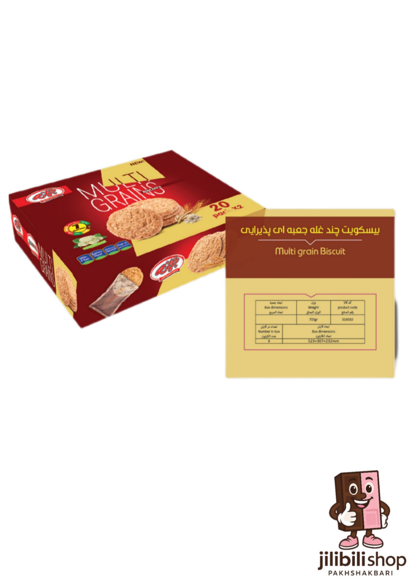 بیسکویت چند غله کاکائویی ۱۹۰گرم ۱۵عددی جمانه